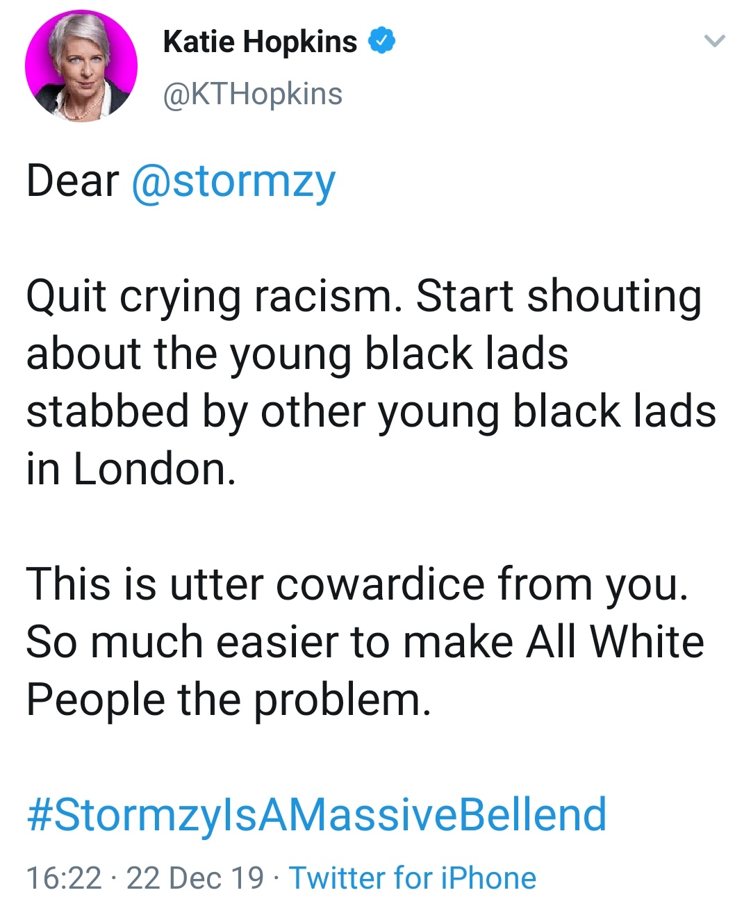 Several australian lawmakers called for katie hopkins' deportation after it was revealed that the british provocateur was allowed into the country despite strict. We have a major problem with black gangs in different areas of london, in well i say tough luck, if young black men are the guys mostly committing these crimes then young black. Katie hopkins first came to the public's attention as a contestant on the apprentice in 2006. Katie hopkins was born on february 13, 1975 in barnstaple, devon, england as katie olivia hopkins. Katie hopkins takes swipe at 'spoiled' will young after strictly exit.